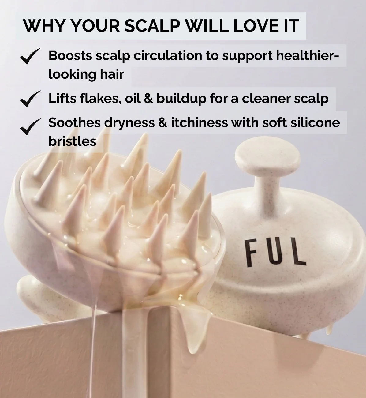 The FUL Scalp Massager is your all-in-one shower brush, hair stimulator, and exfoliator in one smart tool.